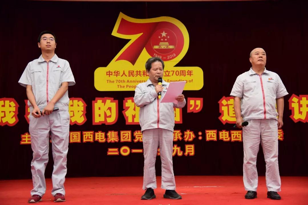 活动中,展播了各单位《我和我的祖国》系列视频,与会同志同唱了爱国歌曲《五星红旗迎风飘扬》,聆听了诗歌朗诵《我的祖国》和西电故事《争做顶梁柱,腾飞中国龙》,欣赏了展现工人力量的舞蹈表演《奋进新时代》,三位“建国”同志结合个人成长、企业变迁、祖国发展谈了自己的切身感悟,西电西变、西开有限两家单位分别作了关于道德讲堂的经验交流,与会人员共同欣赏了歌伴舞《我和我的祖国》。现场活动气氛热烈,大家情绪高昂,故事生动感人,歌声优美嘹亮。