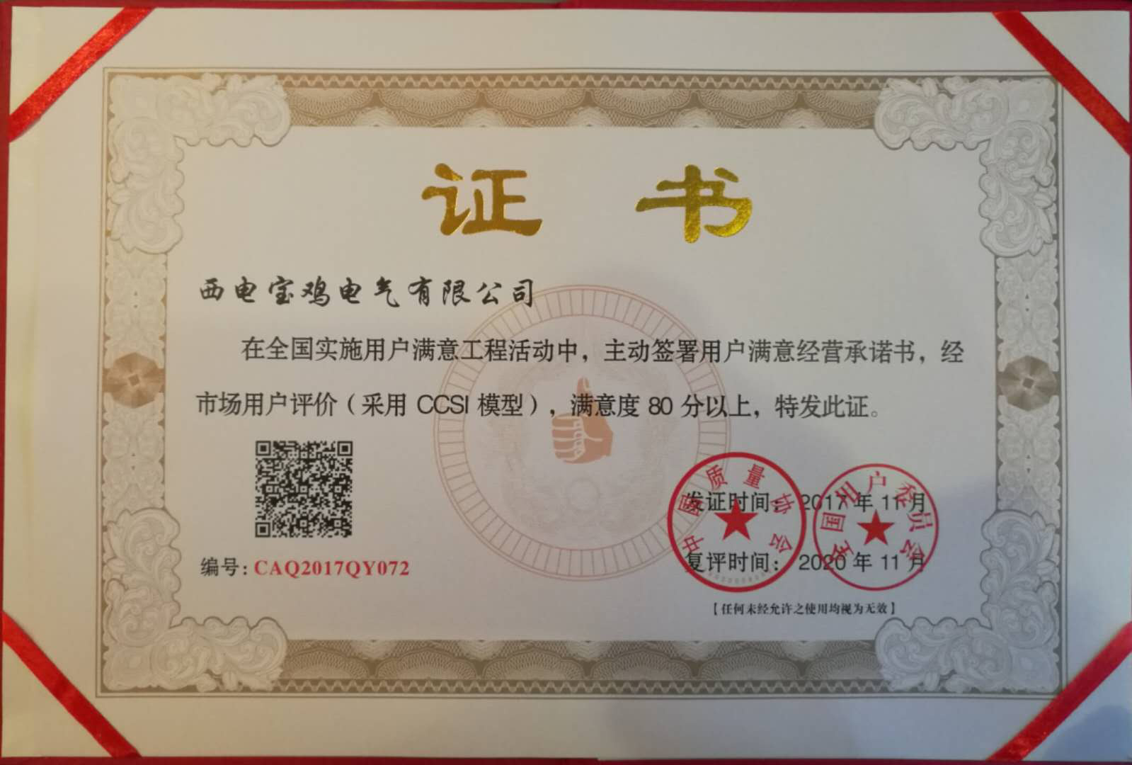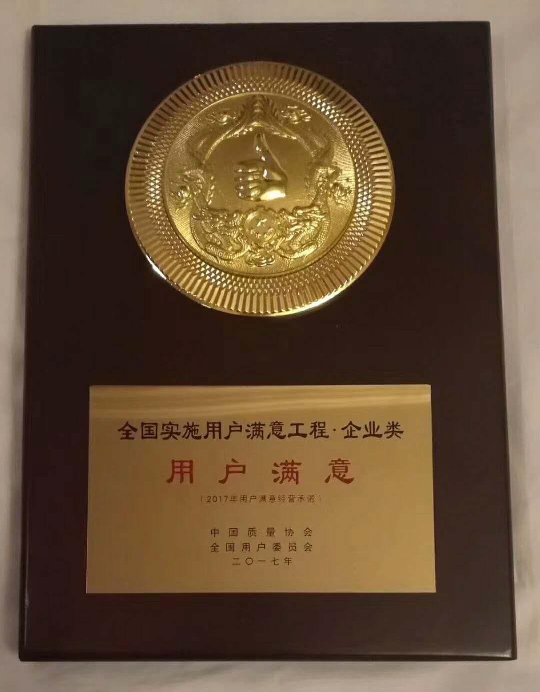 9、11月份,在宁波召开的2017满意中国和2017年全国实施用户满意工程推进大会上,我公司获得“全国用户满意企业”荣誉称号。