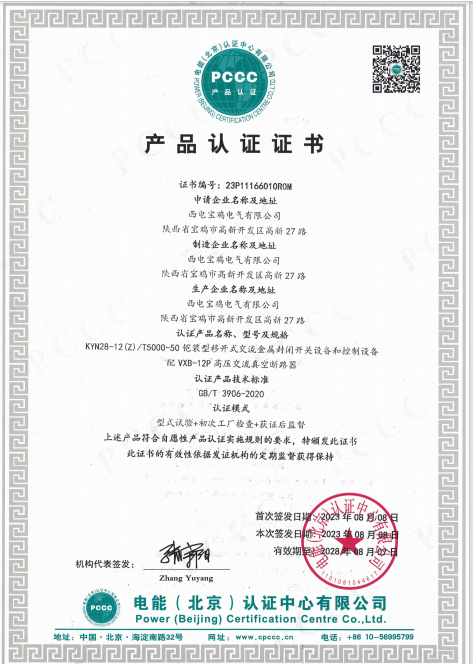 日前,西电宝鸡电气高压产品取得新版产品标准的PCCC认证证书,顺利完成了高压柜自愿性产品认证的换版工作,标志着西电宝鸡电气在高压产品的生产制造、研发水平、质量管控等方面站在了行业更高的标准平台上。