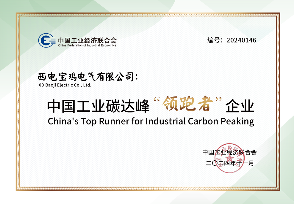 日前,西电宝鸡电气在江苏苏州举办的中国工业经济联合会第三届中国工业碳达峰论坛上荣获2024年中国工业碳达峰“领跑者”企业称号。这是公司继2023年荣获国家级绿色工厂后,在绿色低碳发展方面取得的又一重要成绩。