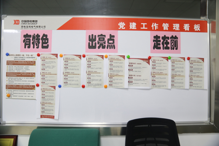 西电宝鸡电气党委以集团党建工作督查为契机,以新时期党建工作目标为方向,结合公司实际,夯基垒台、大胆创新,将精益管理理念应用到党建工作之中,进一步提高了党建工作目视化程度,有效提升了党建工作科学化水平,确保党建工作有特色、出亮点、走在前。