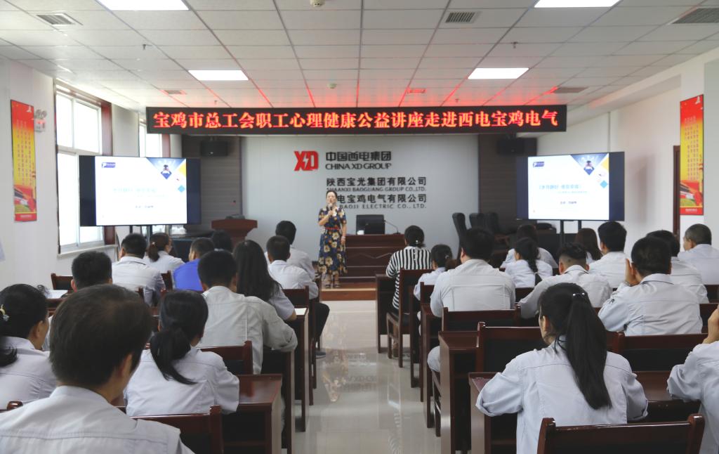 为了持续开展党史学习教育,多方面落实“我为群众办实事”,普及职工心理卫生保健知识,增强职工心理保健能力,7月29日下午,宝鸡市总工会职工心理健康服务宣讲团受邀,为西电宝鸡电气职工带来了一场以“岁月静好 便是幸福”为主题的压力管理与心理调试的专题讲座,来自各职能处室、生产一线的近100名职工参加了本次培训。