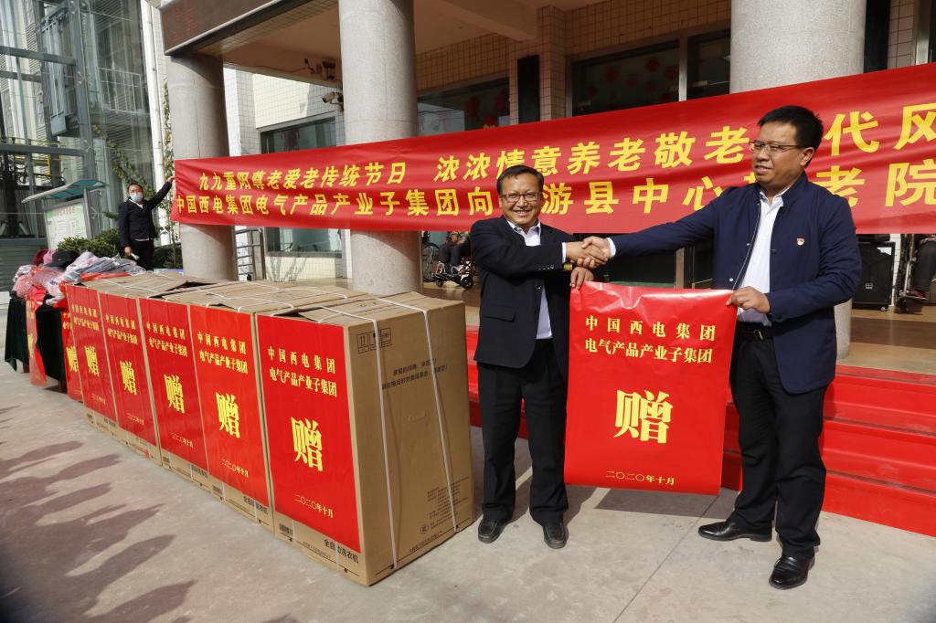 2020年10月25日(星期日,农历庚子年九月初九)是中国传统节日重阳节,西电宝鸡电气党委副书记、纪委书记姚书勤带领党委办公室、党委工作处、工会办公室、团委办公室负责人一行,驱车前往麟游县中心敬老院开展重阳节送温暖活动,让麟游县中心敬老院的老人们在节日里感受到节日的气氛。
