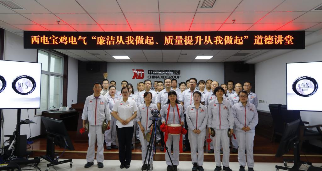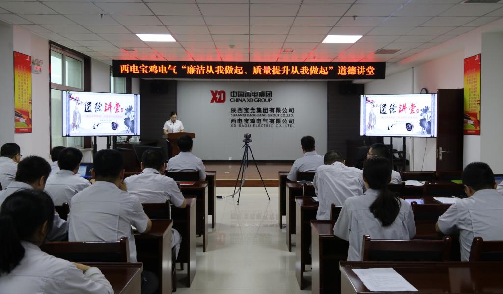 为进一步贯彻落实习近平新时代中国特色社会主义思想,践行社会主义核心价值观,推进党史学习教育、党风廉政建设和反腐败工作进支部、进班组、进岗位,以崇德尚廉的精神面貌庆祝建党100周年,同时,为进一步将“质量月”活动引向深入,9月24日下午,宝光集团党委所属西电宝鸡电气党委主办、质量物资党支部承办了“廉洁从我做起,质量提升从我做起”主题道德讲堂。西电宝鸡电气党委副书记、总经理余明星,宝光集团(西电宝鸡电气)党委副书记、纪委书记姚书勤出席道德讲堂。