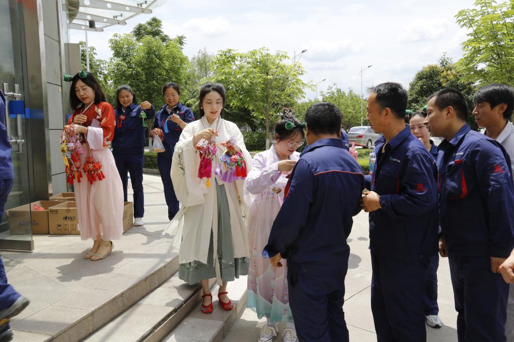 活动现场,别具一格的穿汉服发香包活动正在如火如荼地进行着。志愿者们身着华美的汉服,仿佛是穿越时空而来的古人,为职工们送上香包送去祝福和安康。汉服与香包的结合,不仅让职工感受到了传统文化的魅力,也让人们在忙碌的工作中找到了一份宁静和美好。