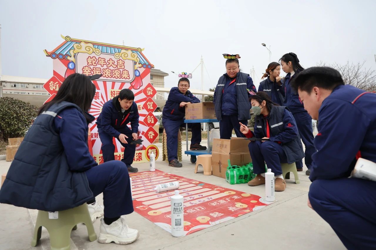 “蛇来运转”、“幸运滚滚乐”、“画蛇添福”等游戏区同样人气爆棚。套圈处摆放着琳琅满目的奖品,每个人都全神贯注地盯着心仪的奖品,摩拳擦掌,跃跃欲试。参与者们从工作人员手中接过几个圈圈,手臂一挥,圈圈如飞燕般轻盈地飞了出去,在空中划出一道道优美的弧线。人群中爆发出阵阵呼喊:“套中!套中!”然而,圈圈却调皮地在奖品边缘擦过,引得众人一阵惋惜。现场气氛跌宕起伏,充满了欢声笑语。浓浓的节日氛围和团圆的喜悦弥漫在公司每一个角落。