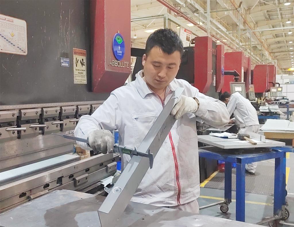 刘鹏是西电宝鸡电气配套事业部钣金产线班长,大专学历,钳工高级技师。他爱岗敬业,勤于思考,通过不断摸索学习,不但掌握了数控折弯机的普通维修知识,也对班组其它折弯机的维修工作全面掌握。近年来,为公司节约设备维修成本近40万元。为提高折弯效率,降低人工作业强度,刘鹏通过对折弯操作过程进行反复研究试验,对前侧板折弯方法进行改进,采用自动折弯设备完成前侧板加工成型,提高了侧板折弯效率,单件侧板折弯时间节省12分钟,提升效率40%。折弯作业时,因零件和台面之间滑动摩擦,长期使用,台面变形等原因,易造成板面轻度划伤,影响产品外观质量,刘鹏采用双层板焊接制作台面,增加台面强度,减少台面变形,用万向滚珠作为台面支撑,使加工过程中材料与工作台的接触由面接触改为点接触,由滑动摩擦改为滚动摩擦,减少了划伤风险,提高了产品的外观质量。他熟悉钣金产线自主编程和操作,2021年被评为西电宝鸡电气“企业工匠”,2022年创立的“国网式前侧板分步加工法”被评为西电集团“职工先进操作法”,2022年荣获中国西电集团“技能专家”称号。