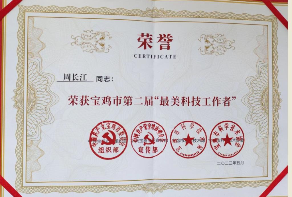 近日,在宝鸡市第二届“最美科技工作者”命名及表彰大会上,西电宝鸡电气技术中心周长江荣获宝鸡市第二届“最美科技工作者”称号。这一荣誉的获得,不仅是党和政府对周长江长期在科技战线呕心沥血、拼搏奉献的肯定;同时,也是对以周长江为代表的西电宝鸡电气全体科技工作者的高度认可。